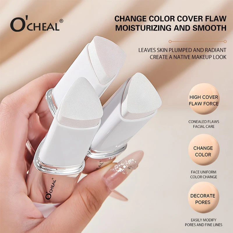 2-in-1 Color-Changing Foundation Stick Lightweight Moisturizing Concealer Foundation Cream Face Brightening Makeup Cosmetics