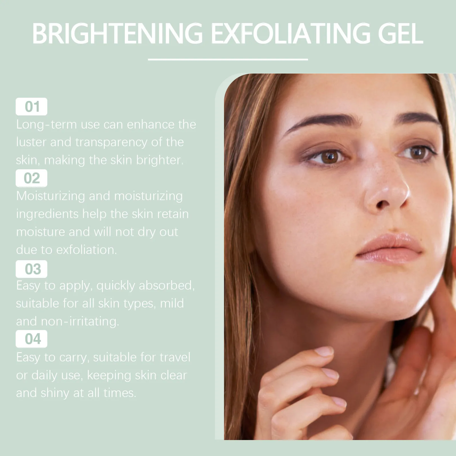 3. Easy to apply, quickly absorbed, suitable for all skin types, gentle and non irritating. Easy to carry, suitable for travel or daily use, always keeping the skin fresh and radiant.
