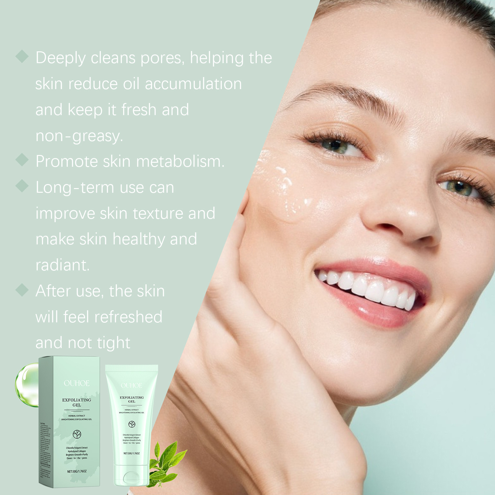4. By gently exfoliating, improve dull skin tone, make the skin uniform and bright, and help restore skin radiance. Help reduce oil accumulation on the skin and maintain a refreshing and non greasy appearance. Promote skin metabolism.